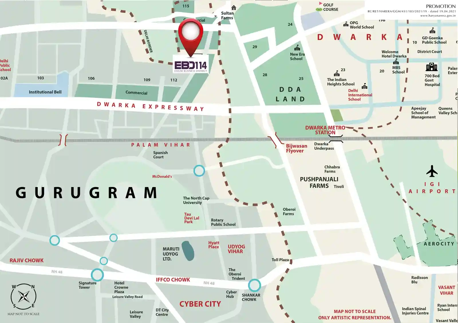 Residential projects like Emaar Palm Heights, DigiHomes, Emerald Hills — premium residential addresses in Gurugram.