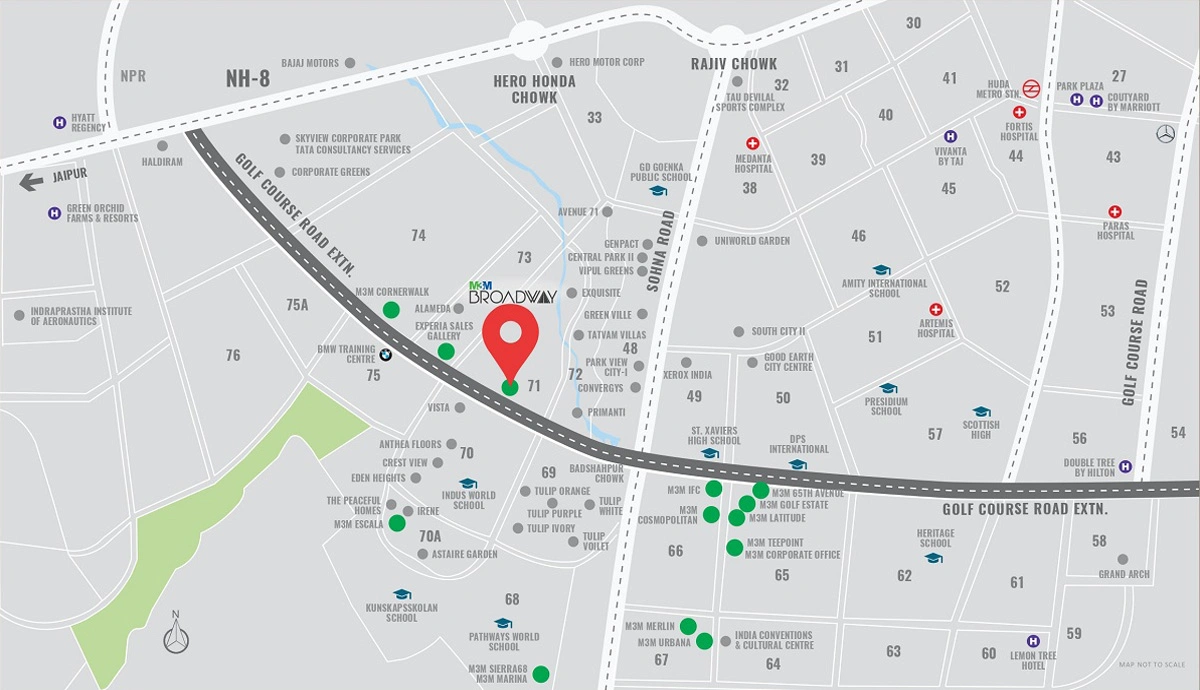 M3M Broadway offers high street retail shops, showrooms and office spaces with excellent frontage and visibility. The project includes double height retail units, well planned office spaces and dedicated zones for dining and entertainment. Layouts are designed to maximize footfall and brand exposure, making the project suitable for national and international brands, restaurants, cafes and corporate offices. The overall planning ensures smooth movement and a premium commercial experience.