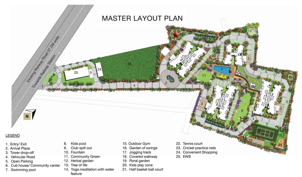 The project features a well equipped clubhouse with a range of lifestyle amenities including a gymnasium swimming pool indoor games multipurpose hall and recreation areas for residents Landscaped gardens jogging and walking tracks childrens play zones and open green spaces enhance the overall community environment A five tier security system with controlled access CCTV surveillance and professional management ensures safety and peace of mind Power backup high speed elevators and covered parking are additional conveniences provided