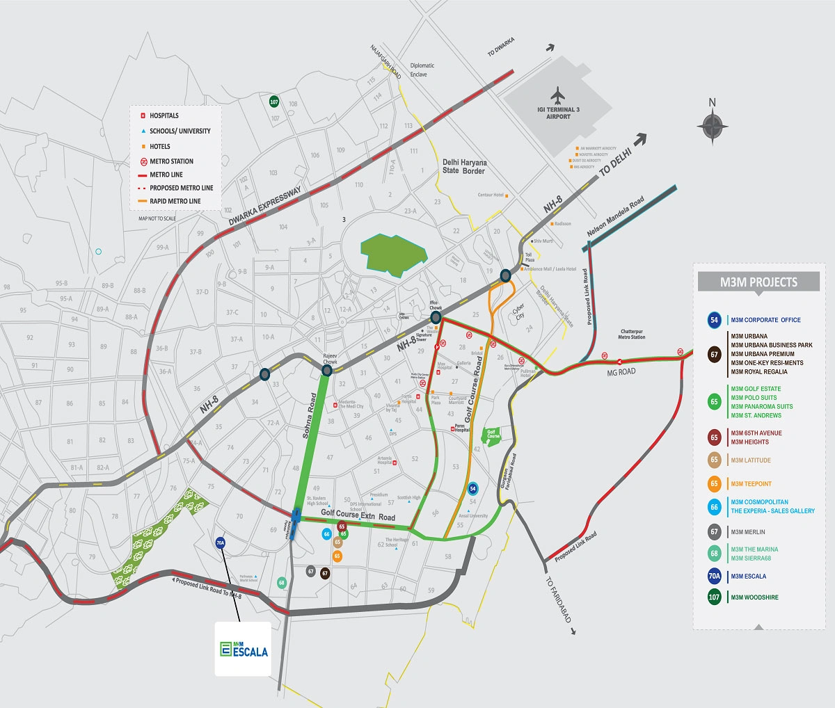Embedded in greenery with uninterrupted views of the Aravalis and with 90% open and green spaces is the luxury project M3M Escala. M3M Escala is an exclusive condominium complex that has 152 apartments that are spread across 2 towers.