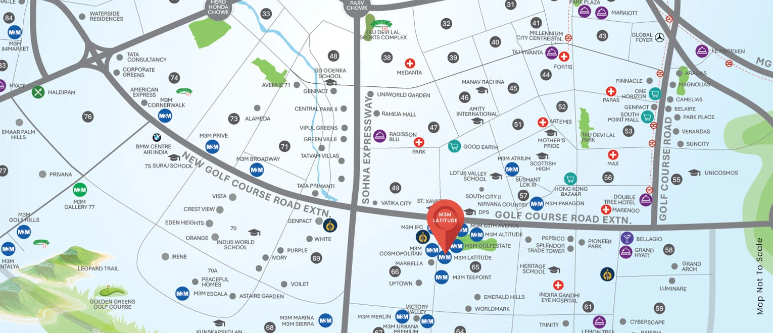 The M3M Latitude is located in one of the main areas of the golf extension. The recommended metro station is just a few steps away.