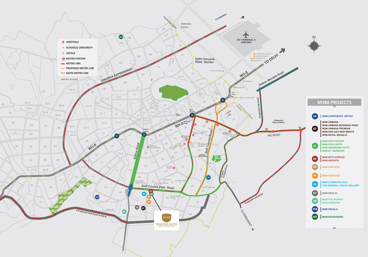 Featuring polo motifs and designed by an international team of experts, M3M Polo Suites exudes elegance and sophistication amidst the 56-acre M3M Golf Estate.