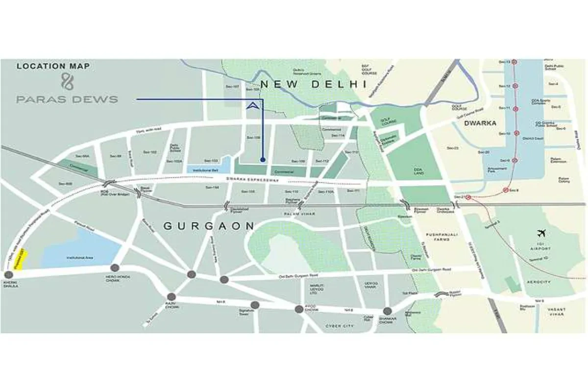 BADMINTON COURTParas Dews Gurgaon includes 3 and 4 BHK apartments The project stretches over 6 towers and includes many amenities for residents such as a swimming pool, rescue area, children's play area, jogging track, clubhouse, multi-purpose room, promenade, spa, lecture hall, yoga and 24-hour water supply. 112 among others.