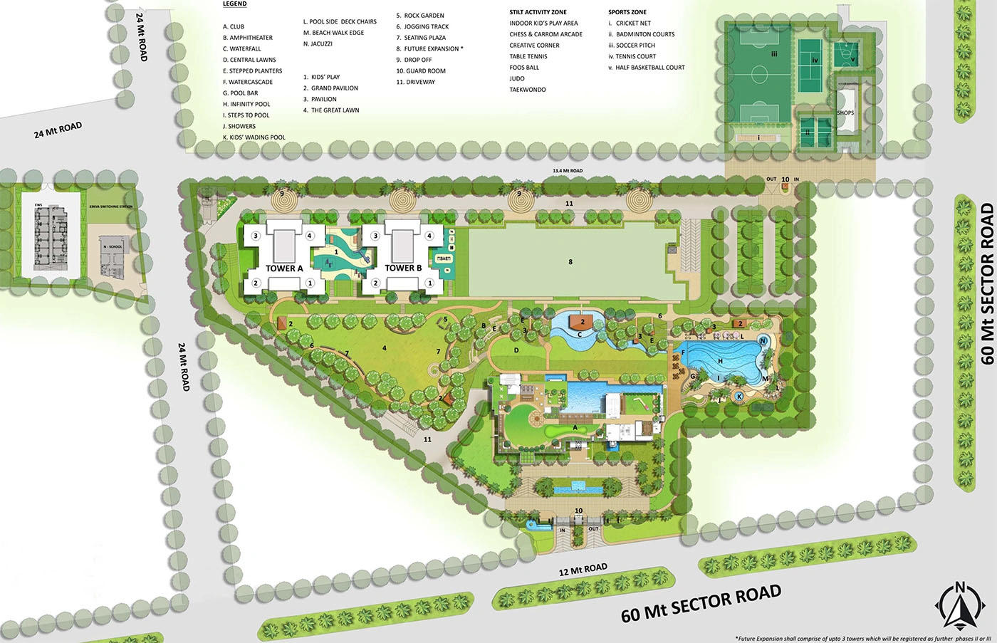 Envisioned with a luxury lifestyle for the residents, there are only 4 towers within the project, with plentiful green spaces and other amenities. A beautifully landscaped garden will compliment the greenery and therefore the residents will have serene living. The project boasts of all the luxurious amenities for the residents to enjoy and unwind daily within the office. Poolside restaurants, spas, and salons are just a few of them.