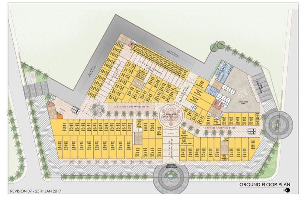 The development includes ample parking space, power backup, high speed elevators and advanced fire safety systems. Central air conditioning in common areas, professional facility management and 24x7 security with CCTV surveillance ensure smooth and secure operations. Landscaped open areas and dedicated zones for cafés and dining create a vibrant and engaging commercial environment.
