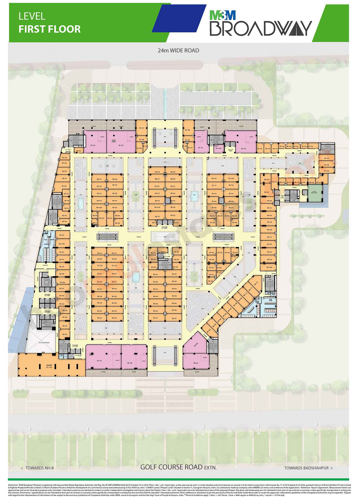 M3M Broadway offers high street retail shops, showrooms and office spaces with excellent frontage and visibility. The project includes double height retail units, well planned office spaces and dedicated zones for dining and entertainment. Layouts are designed to maximize footfall and brand exposure, making the project suitable for national and international brands, restaurants, cafes and corporate offices. The overall planning ensures smooth movement and a premium commercial experience.