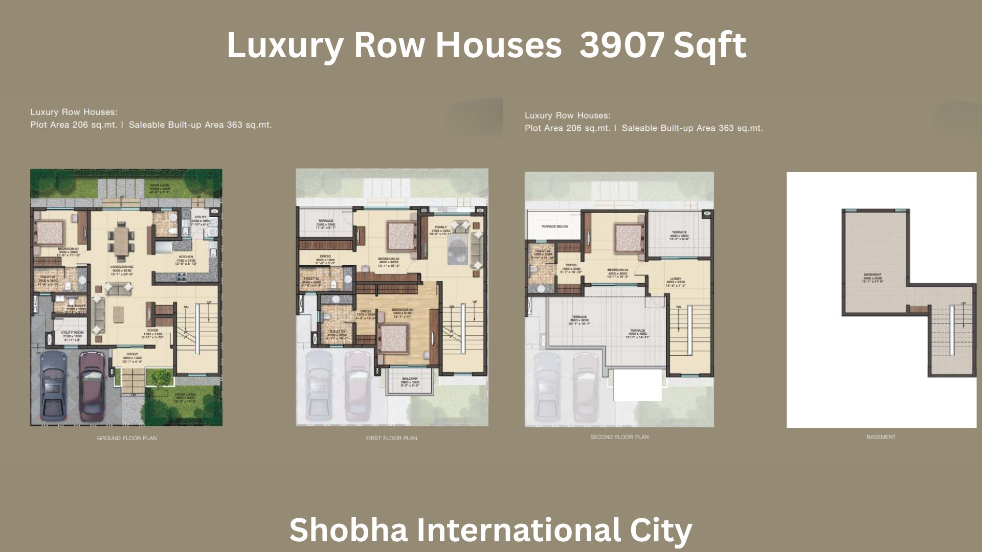 | 4 BHK + Lounge + U Luxury Row Houses | 3907 Sqft | As Applicable | view |