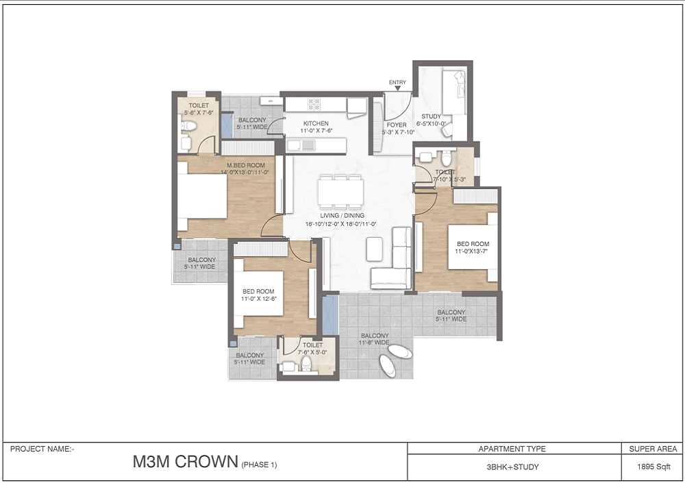 | 3 BHK + S | 1895 Sqft | As Applicable | view |