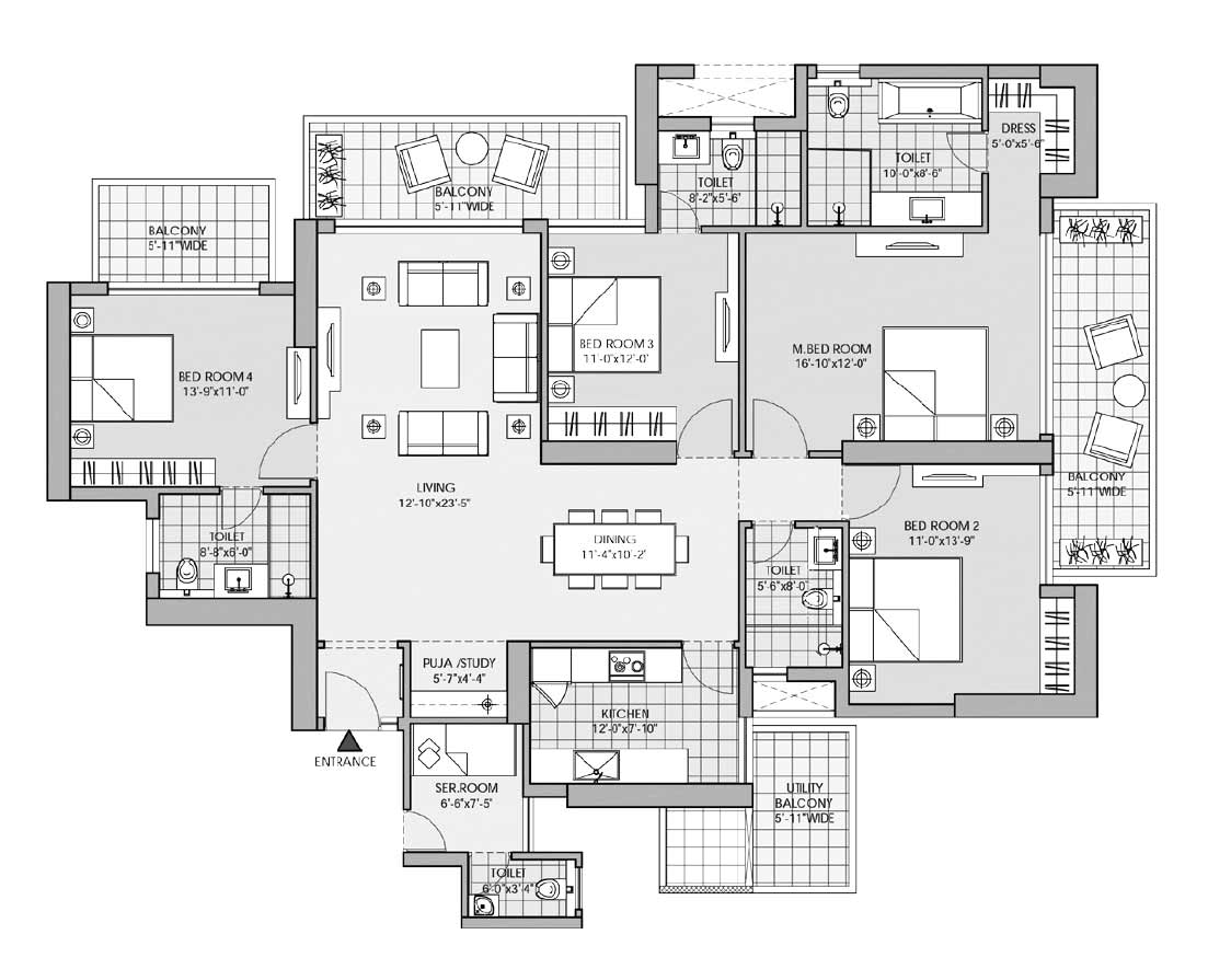 M3M Latitude offers thoughtfully planned 2 BHK, 3 BHK and 4 BHK apartments with spacious interiors and functional layouts. The residences are designed to maximize natural light, ventilation and everyday comfort. Quality fittings, modern finishes and practical floor plans enhance the living experience. Balconies and large windows add to the visual openness and usability of the homes.