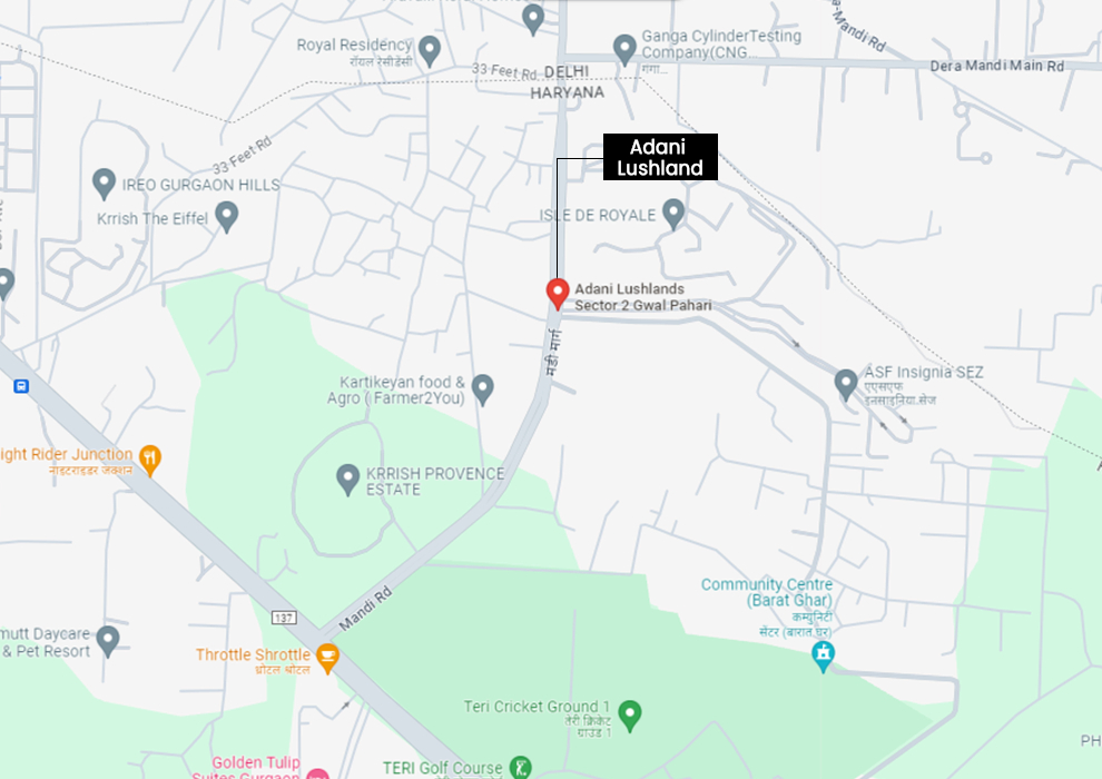 BADMINTON COURTAdani Lushlands is a high-end residential project by Adani Realty located in Sector 2, Gwal Pahari, Gurgaon (on the Gurgaon Faridabad Road corridor).