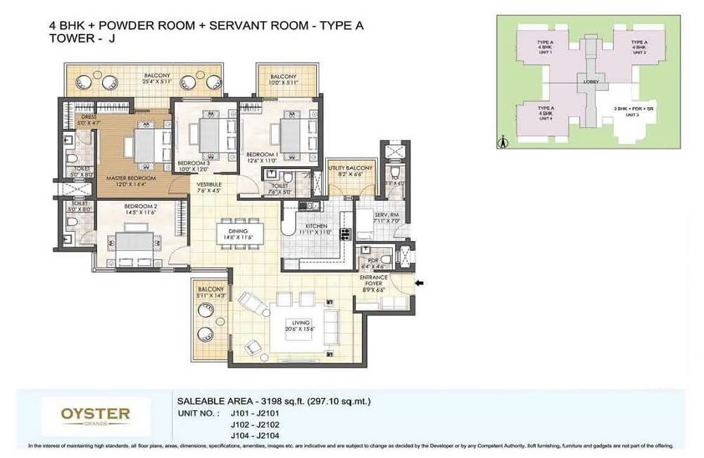| 4 BHK + Powder Room + Servant | 3198 SQFT | On Request | view |