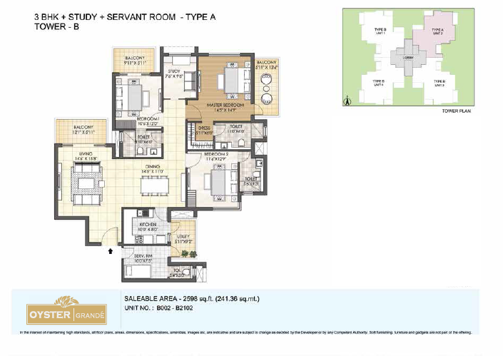 | 3 BHK + STUDY + SERVANT | 2598 SQ.FT | On Request | view |