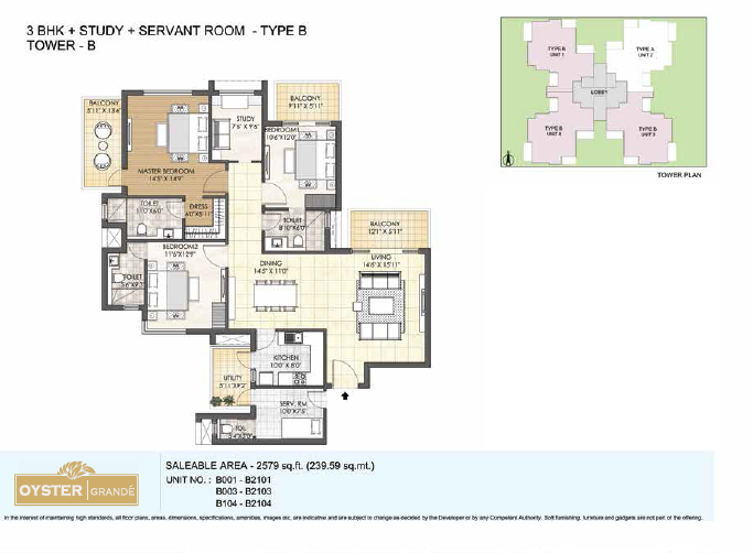 | 3 BHK + STUDY + SERVANT | 2579 SQ.FT | On Request | view |