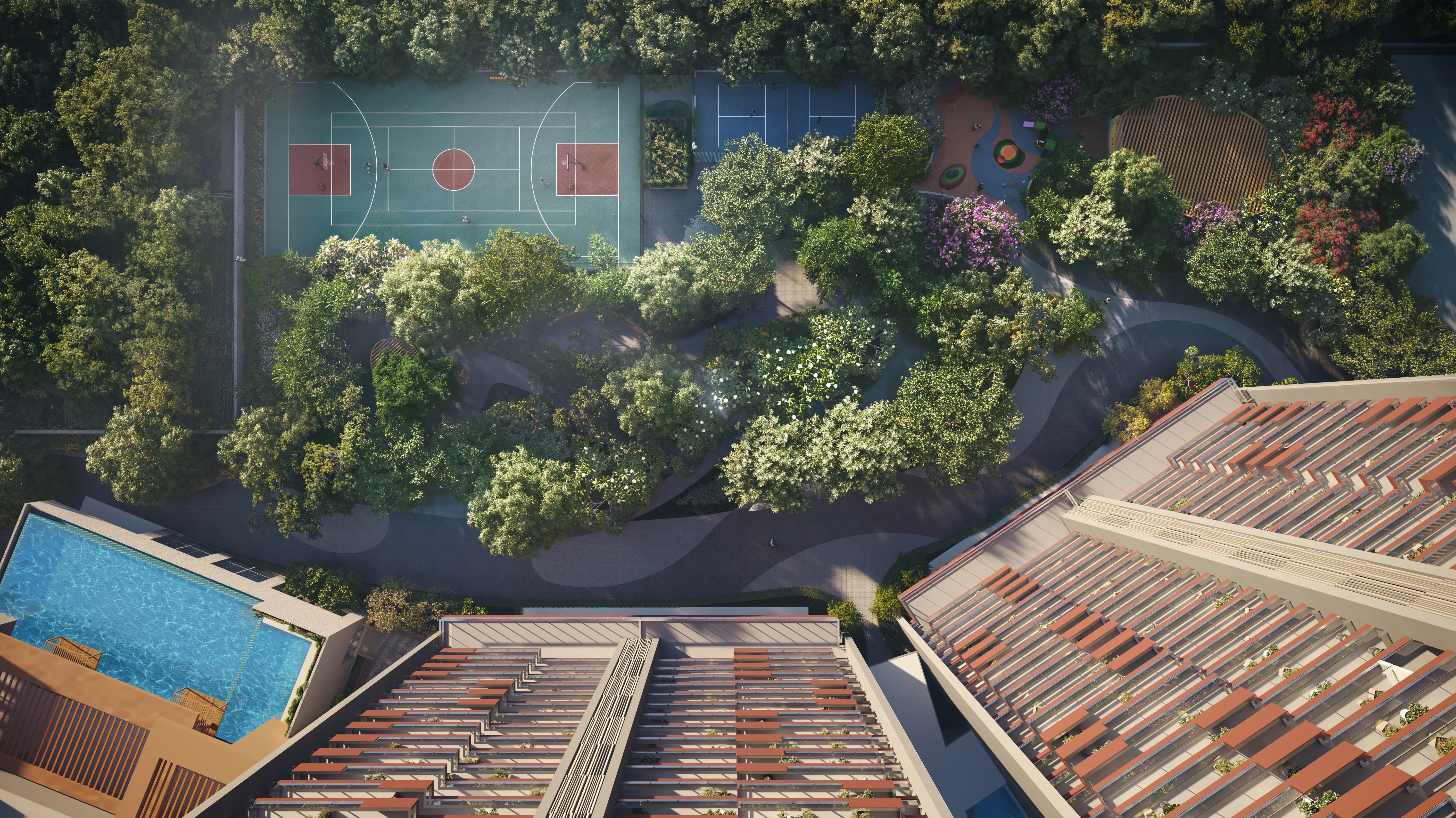 Dedicated kids play area and jogging tracks
