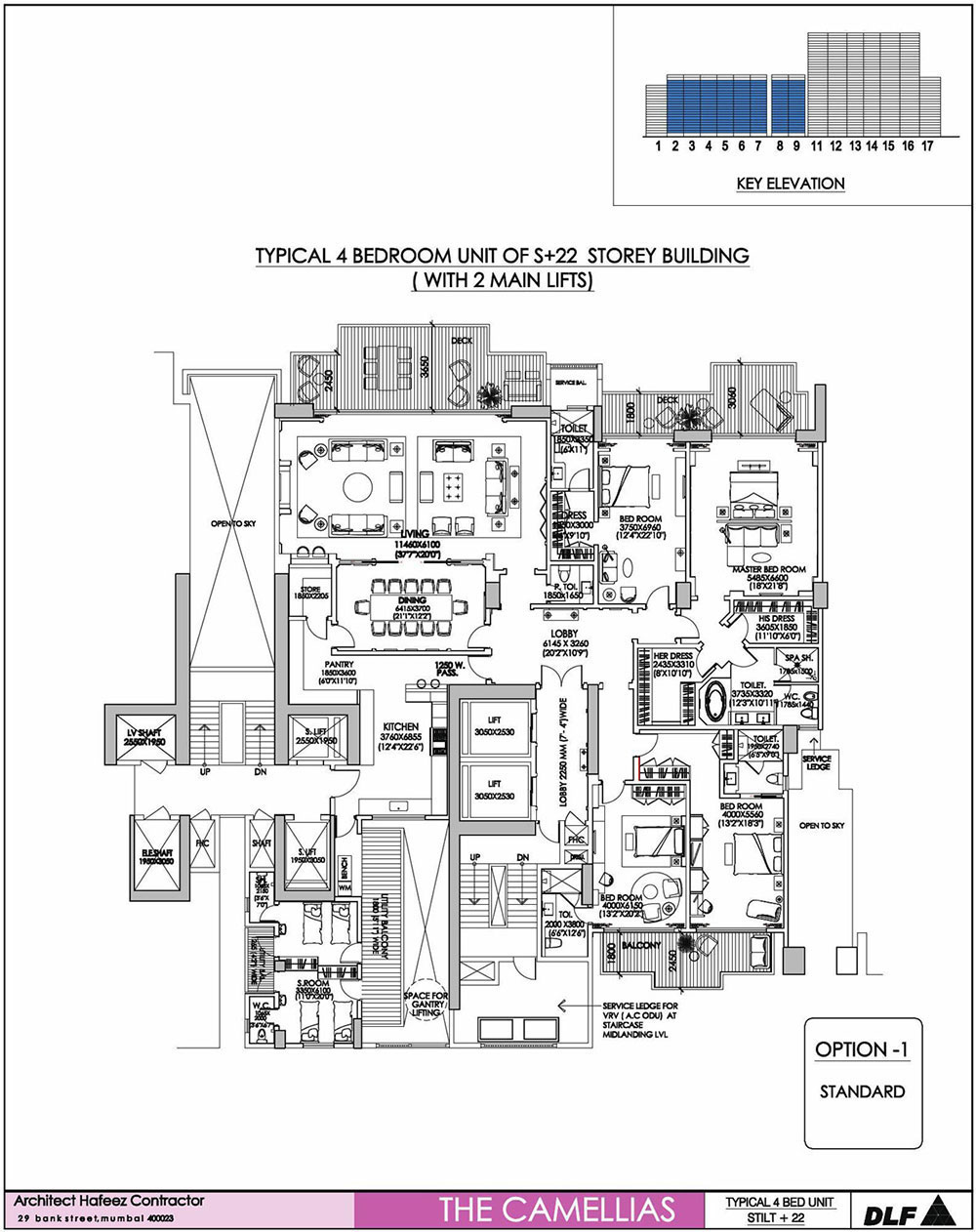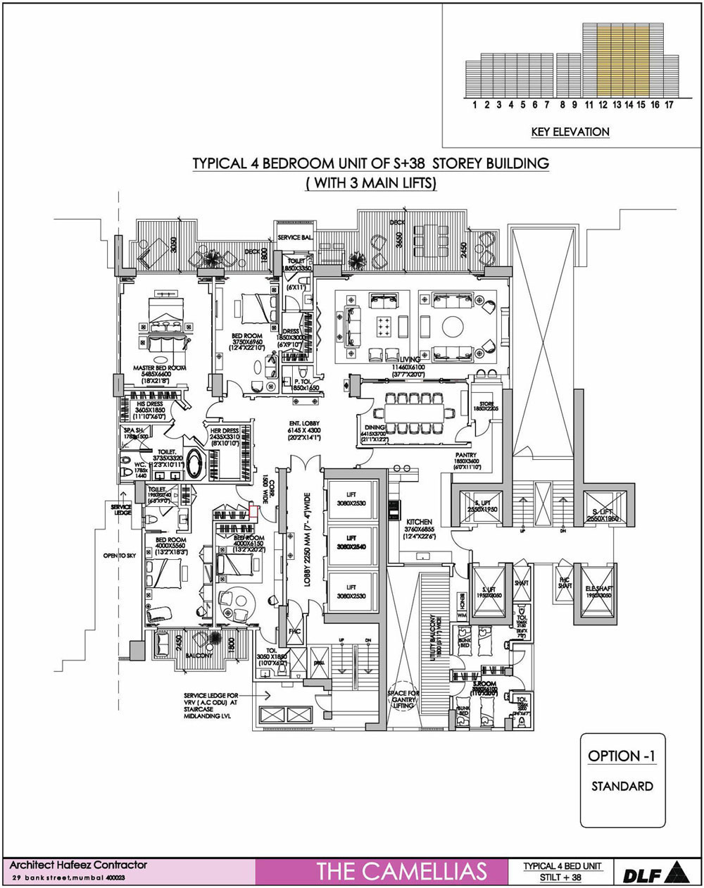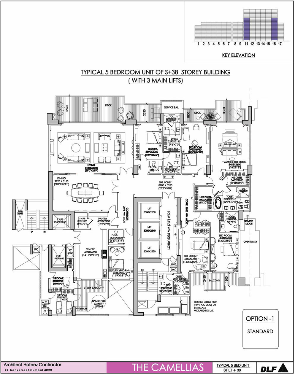 Let's go where form meets function. Designed by world-renowned architects, the elegance of DLF Camellias is further emphasized by the 75% open green space. The large façade and smart lighting system combine to make it a landmark in the future that is recognized by many. Special structural design is functional as well as aesthetic.