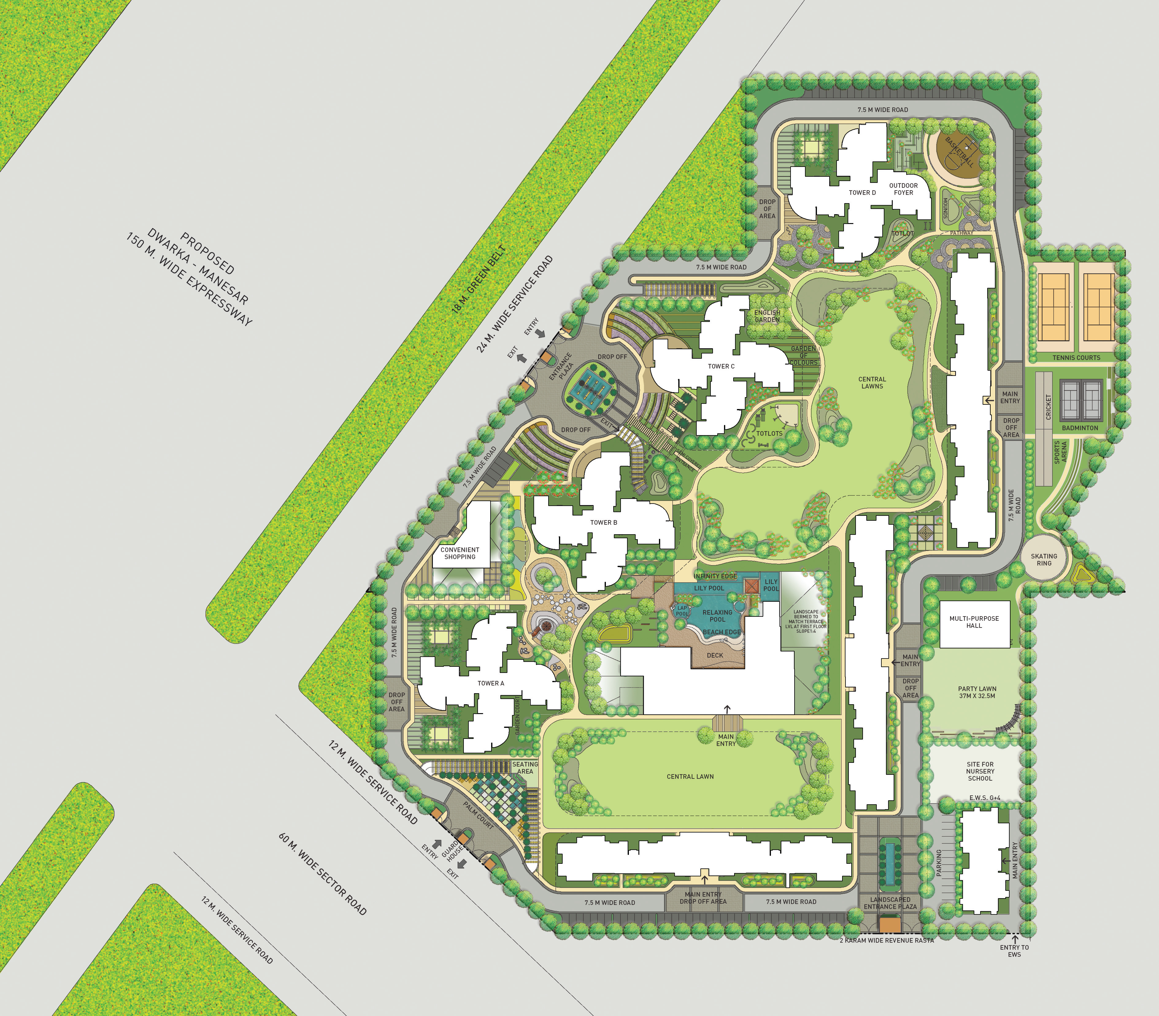 BADMINTON COURTIndiabulls Enigma Township is an exploration residential area with acres of the themed landscape stretching around the buildings creating a natural green buffer and noise barrier. Carefully designed play areas, strategically located within the hotel's premises, add to the overall vibrancy. The use of imaginative engineering and unique design principles ensures that no apartment overlooks another, providing ventilation throughout, cooling and providing pure daylight.