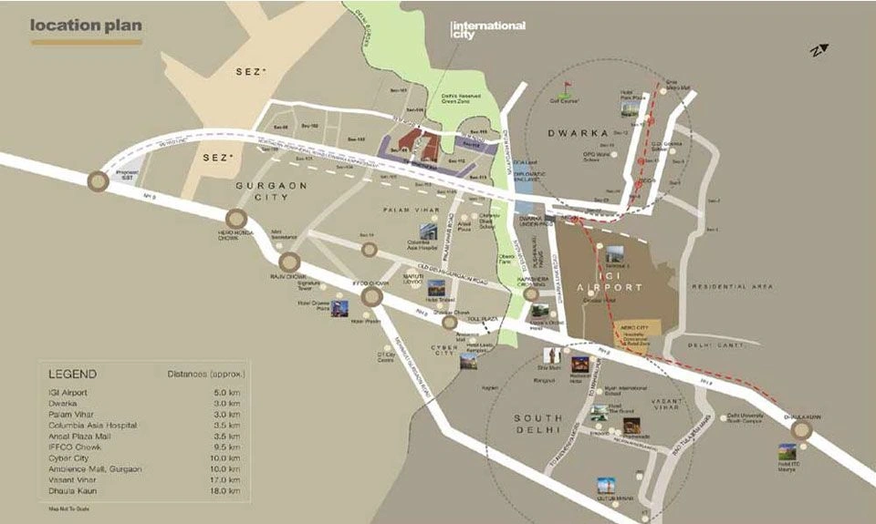 BADMINTON COURTInternational City – One of the best upcoming luxury communities for Delhiites is Sobha International City, an exclusive villa community spread across 160 acres and within walking distance of the Airport Indira Gandhi International. The area is well connected and will grow even more in the near future thanks to the upcoming Dwarka highway and is the closest villa community to New Delhi. Now you don't have to worry about coming from South Delhi as Sobha is only a 30-35 minute drive from areas like Shanti Niketan, Vasant Vihar and West End. Commuting to work will also be easy as it is less than 30 minutes from Gurgaon. Sobha International City is located at points 106, 108 and 109 of Gurgaon