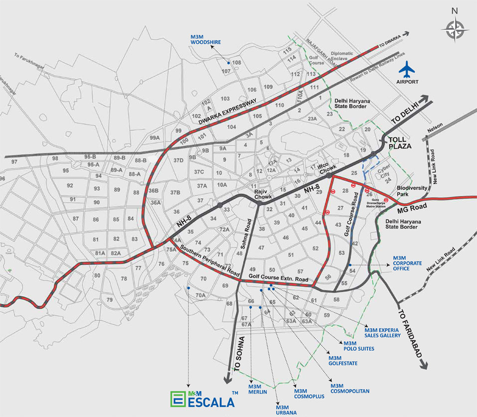 Embedded in greenery with uninterrupted views of the Aravalis and with 90% open and green spaces is the luxury project M3M Escala. M3M Escala is an exclusive condominium complex that has 152 apartments that are spread across 2 towers.