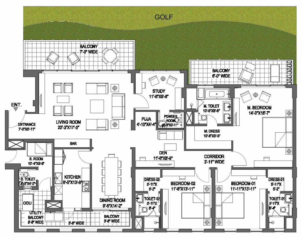 3 BHK + PUJA ROOM + SERVANT 3771 SQ.FT On Request view