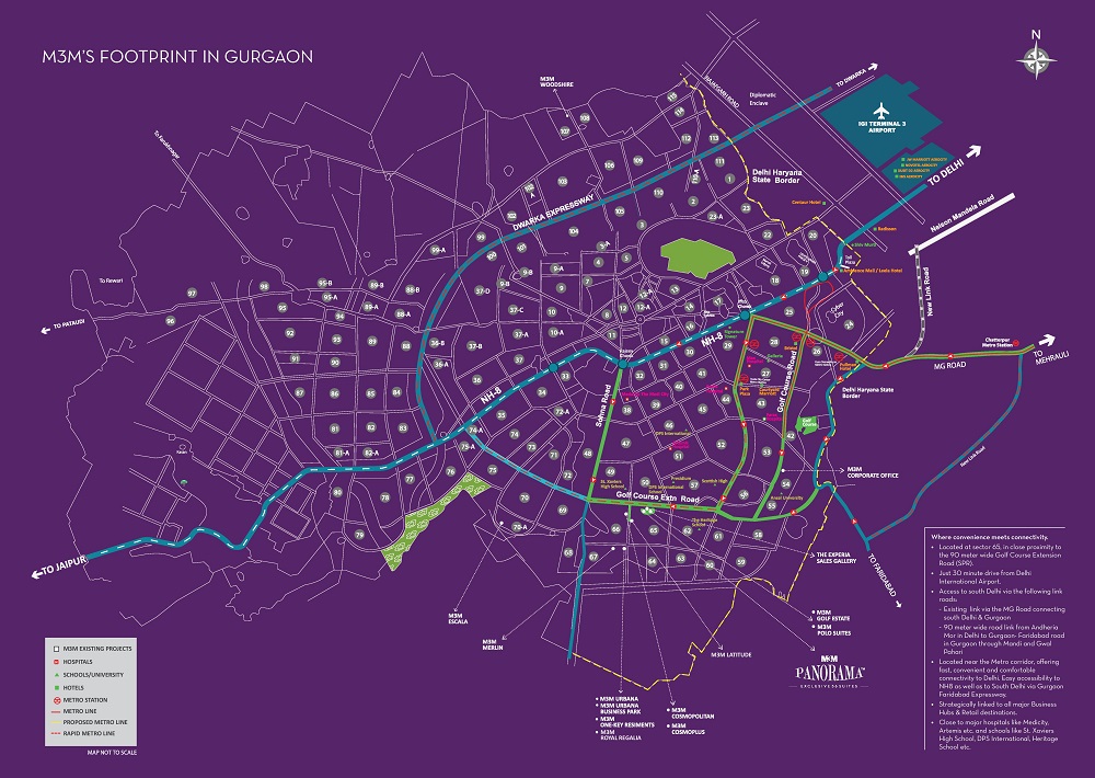 M3M Panorama Suites is strategically located in the high-growth corridor of Golf Course Extension Road in Sector 65, Gurgaon.
