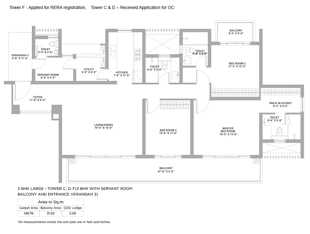 | 3 BHK L TOWER C, D AND F | 148.76 Sq.m | Not Applicable | view |
