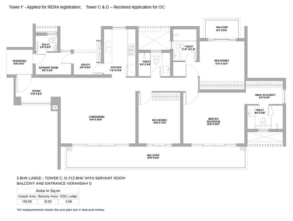 | 3 BHK L TOWER C, D AND F | 149.30 Sq.m | Not Applicable | view |