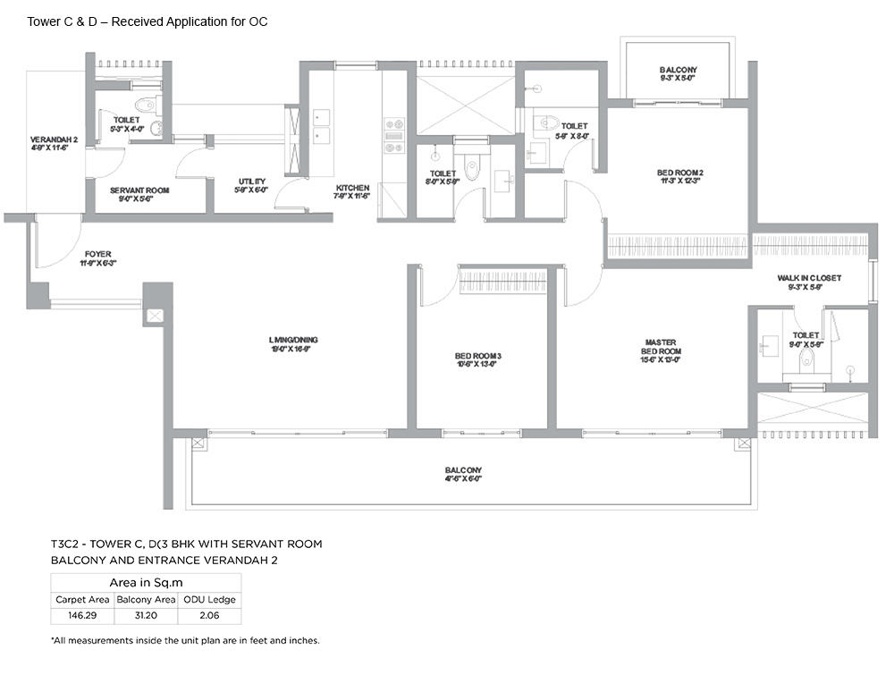 | 3 BHK - T3C2 TOWER C AND D | 146.29 Sq.m | Not Applicable | view |