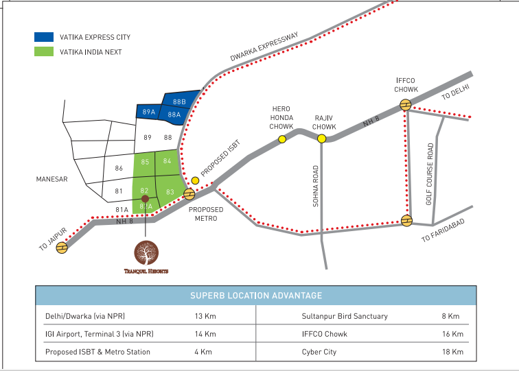 An ISO 9001:2008 certified company, Vatika Group has managed a total of 31 projects to date, 20 of which are under construction. Sector 82A is one of Gurgaon's top spots. NH-8 is just off Sector 82A. The location is also surrounded by areas such as Sector 92, Sector 69, Sector 107, Sector 41 Bhiwadi, Sector 24 Dahra, Sector 50, Sector 22 Gurgaon, Sector 62, Sector 88B and 81.